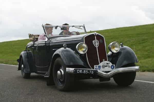 Although the 601 was only in production for 2 years, the 601 was a popular car at concours d’elegances. The body style “transformable electrique” (now known as the CC) in particular appealed to the public’s imagination. The transformable electrique, or the Peugeot ‘Eclipse’, was born thanks to the meeting of three men: Darl’Mat, one of the most important Peugeot dealers, coachbuilder Marcel Pourtout and Georges Paulin, who was actually a dentist but also found his talent in designing of cars. It was Georges Paulin who entrusted the paper with an idea in 1933 to fold a metal roof completely into the trunk. He patented his invention and then went for coffee with Marcel Pourtout. Eventually, they enlisted their friend Darl’Mat to try out the concept on the new 601. The result was astonishing. The iconic Peugeot Eclipse was born. Within the walls of Peugeot, the Eclipse is also called the Paulin car. Most Eclipse were built on a 601 frame, but some copies were also built on a 401 frame.