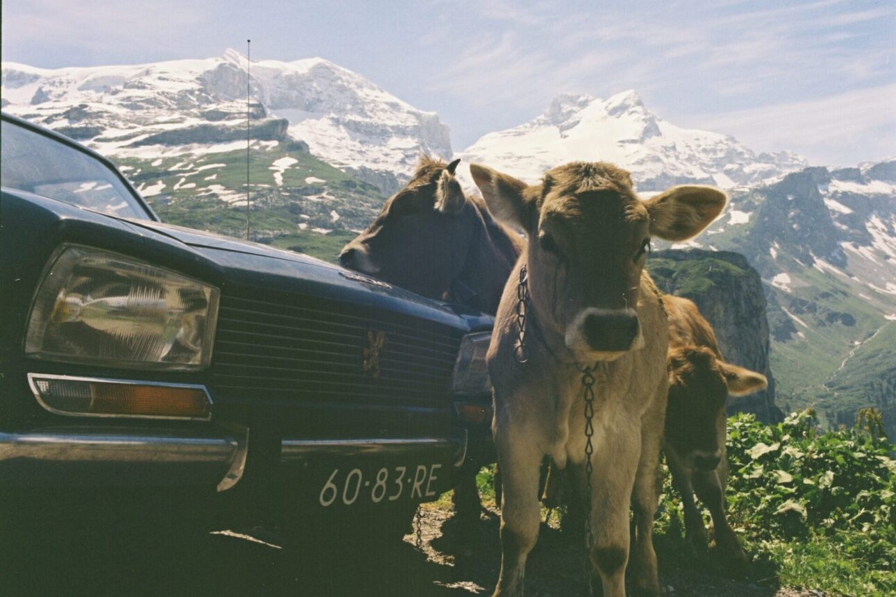 We went out. Also by car of course. On the Klaussenpass, a little further we met some of those beautiful reddish brown alpine cows, some with a wide belt with a huge bell attached to it. They all came to see our new car. That was a great opportunity to take pictures. The cows were very fond of the model. They wanted to subject the car to a closer inspection. They stood around it, trying to lick the paint and the mirrors. Shaking their heads to scare away the flies, they came closer and closer. It looked really cute at first. But the endearment quickly faded as the big bells around their necks nearly hit the car. Unfortunately we had to chase them away, which I thought a bit less. They somehow instantly seemed a lot bigger.