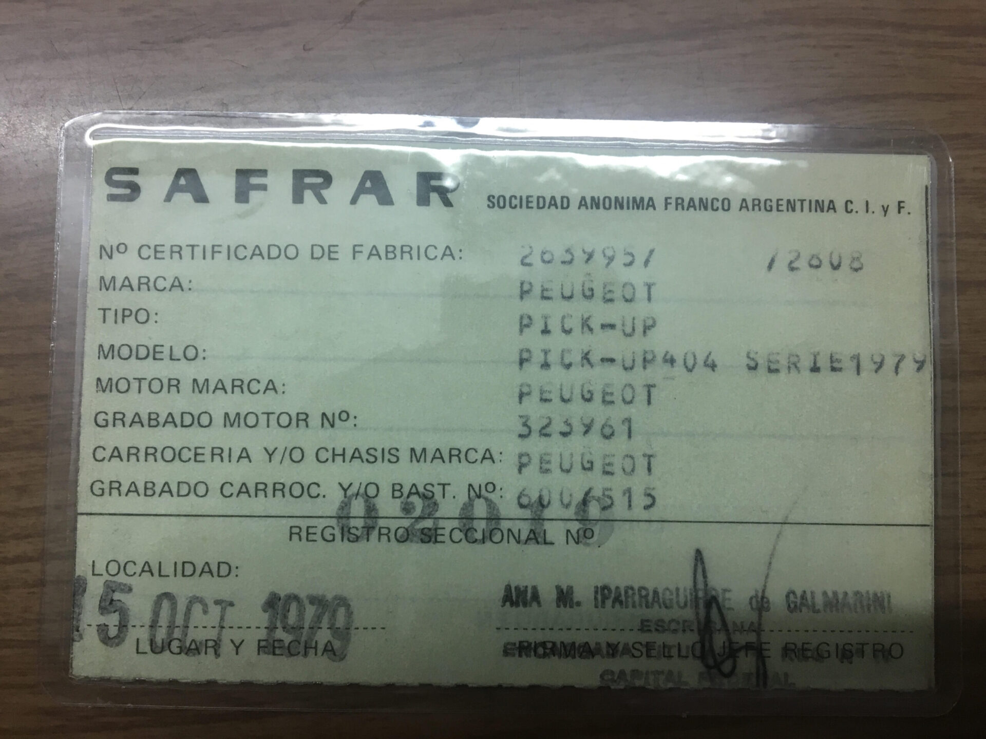 Er zin genoeg herinneringen aan Peugot’s in zijn jeugd zegt Juan. “De eerste Peugeot die wij kregen was een 403 en daarna een 404 diesel. Die diesel werd geleverd met een motor die gebouwd was in Argentinië maar de kwaliteit daarvan was niet best. De laatste 404 was van veel betere kwaliteit. De 404 die bewaard is gebleven is uit 1979 en werd geleverd als kale pick-up in Manilla beige waar later een gesloten stalen unit op werd geplaatst. Vanuit de folder beter bekend als Furgo.”